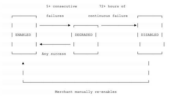 - Merchant must fix the issue and manually re-enable from the dashboard